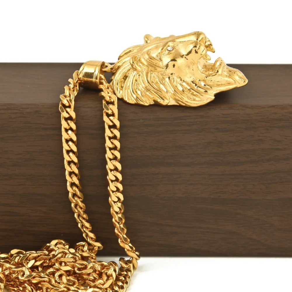 TBTK подвеска с головой короля льва, золотая металлическая подвеска из нержавеющей стали в форме животного, кубинская цепочка, ожерелье, модные хип-хоп ювелирные изделия для мужчин