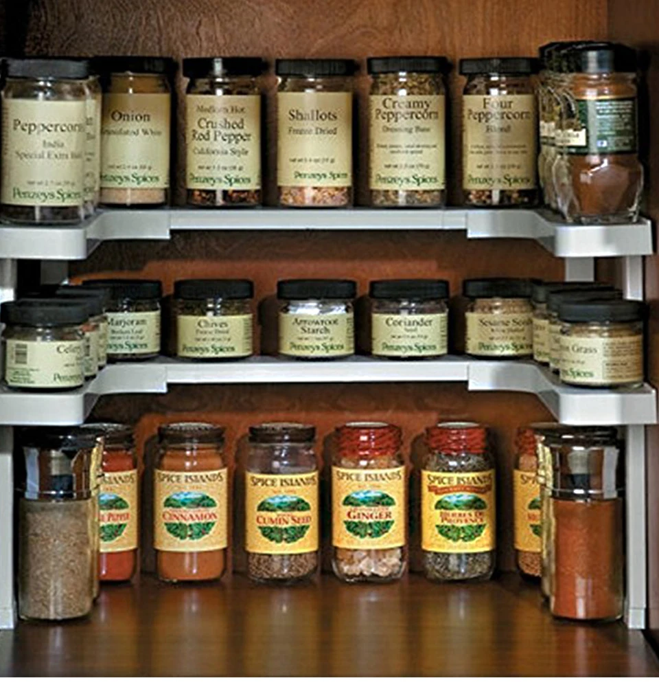 Organize up to 64 spices and see them all at a glance! Spicy Shelf Deluxe is the ultimate stackable cabinet organizer! It can turn a mess of spices into an organized masterpiece!