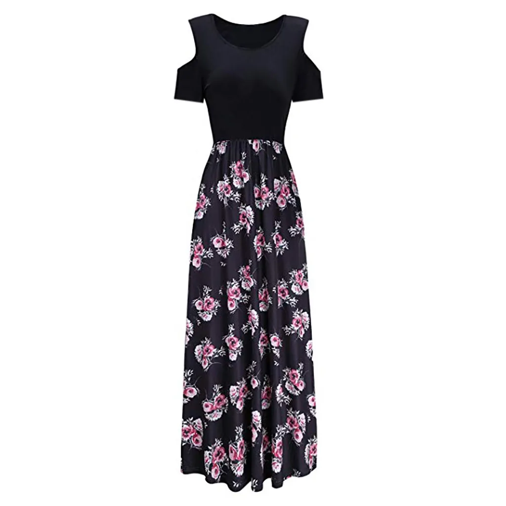 Женское платье с открытыми плечами и цветочным принтом; Элегантное повседневное платье макси с коротким рукавом