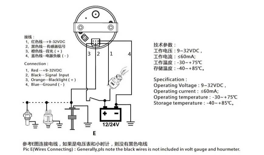Подключение: красный-аккумулятор (+ 9-32VDC) синий-аккумулятор (-) черный-сигнал оранжевый-подсветка (+ 9-32VDC)