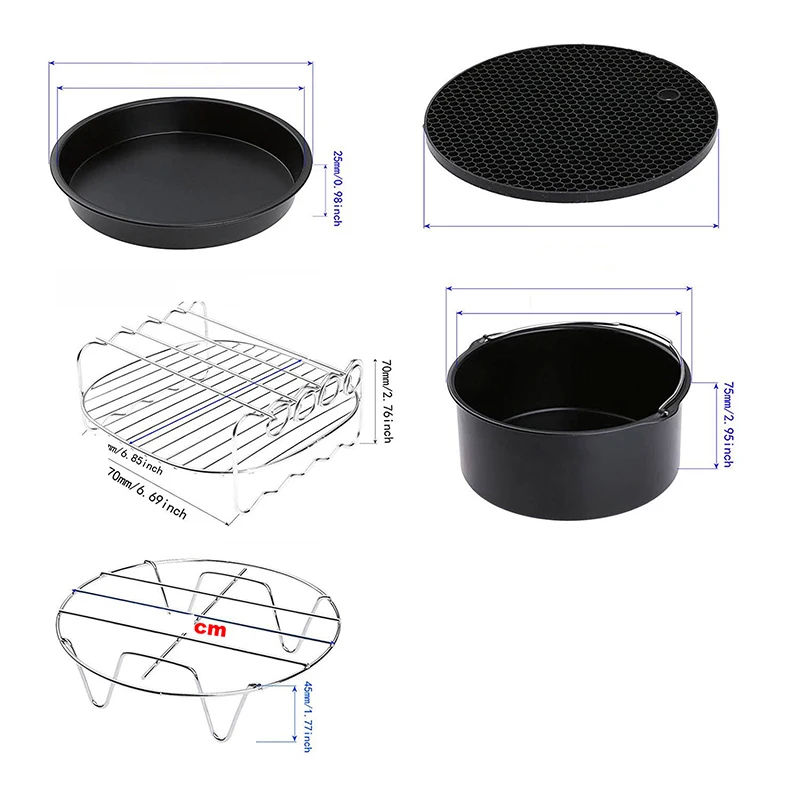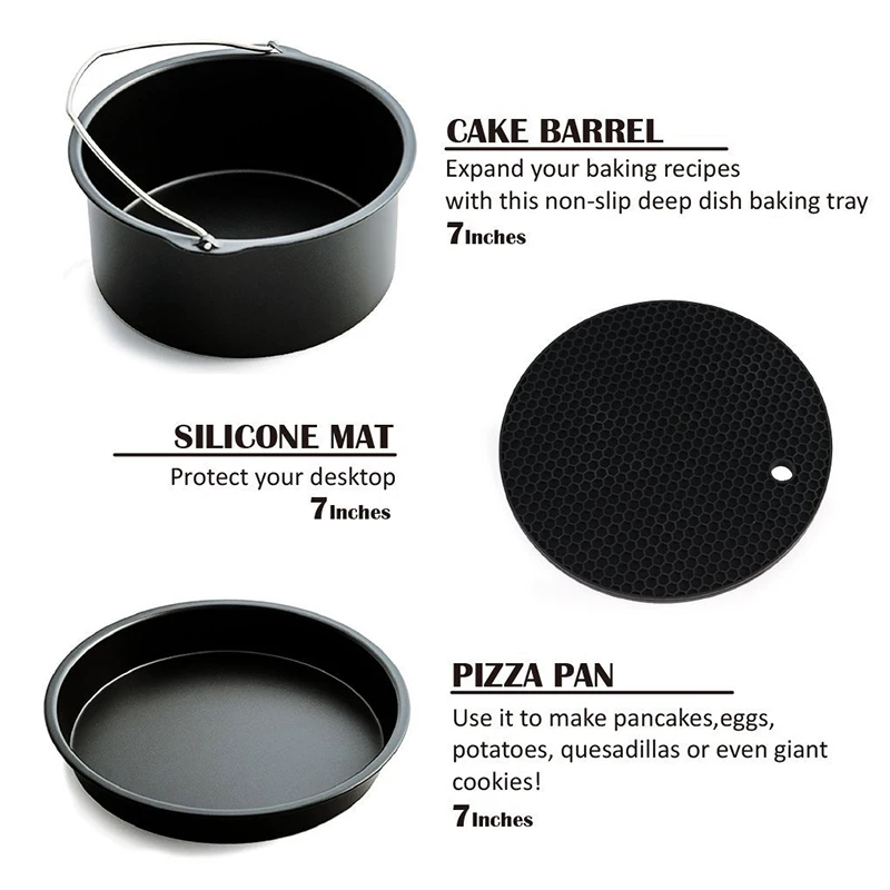 Высокое качество воздуха фритюрница аксессуары 7 дюймов для Gowise Phillips Cozyna и Secura, набор из 5, подходит для всех Airfryer 3.7QT - 4.2QT - 5.3QT - 5.8QT