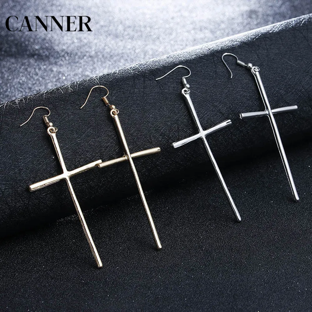 Женские Висячие серьги Canner, длинные висячие серьги серебряного цвета с большим крестом, подарок для девушек, 2019