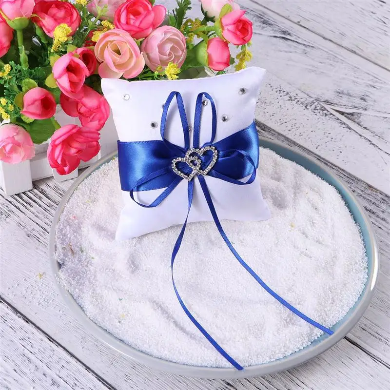 Эта кольцевая подушка изготовлена из сатина и полиэфирной ленты. Его можно использовать для свадебных принадлежностей и помолвочных украшений. На нем есть стразы разных цветов. Жених может надеть на него свадебное кольцо, и оно позволит невесты чувствовать себя удивленным и перемещенным.