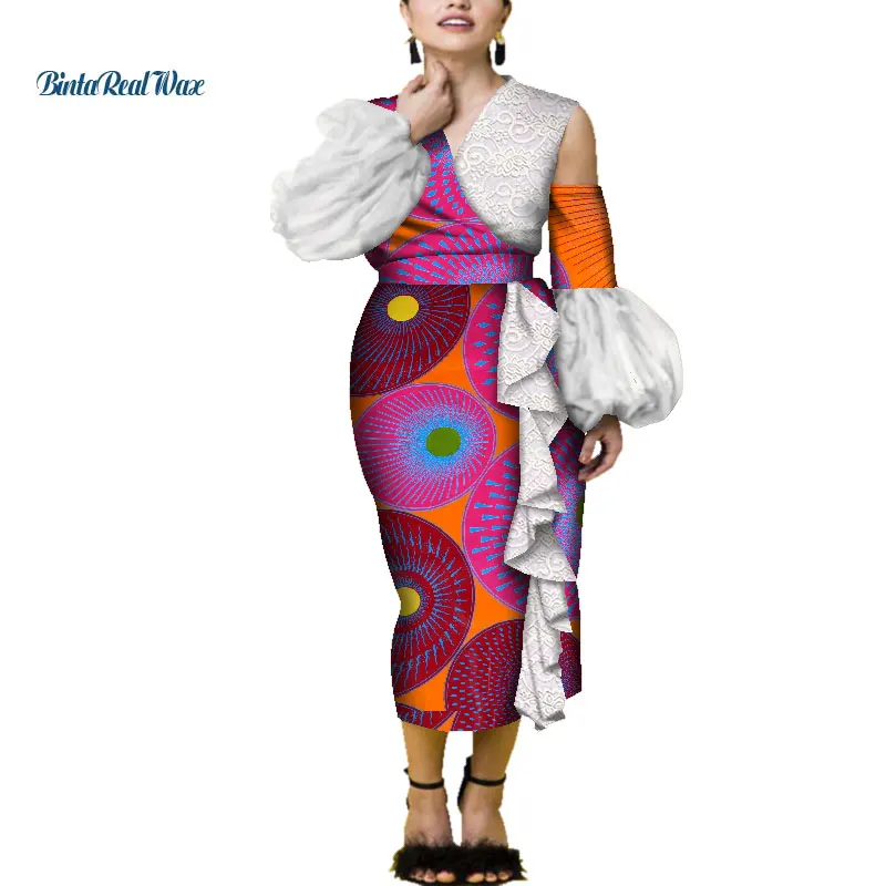 Оборки SleЖенское кружевное платье с драпировкой eve, длинное платье в африканском стиле с принтом в стиле Анкары, одежда в африканском стиле, WY4009