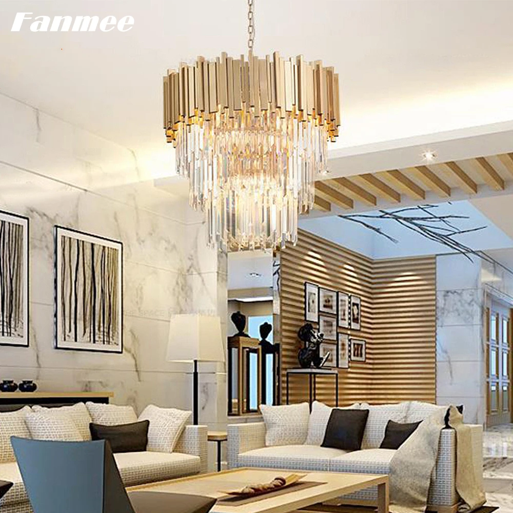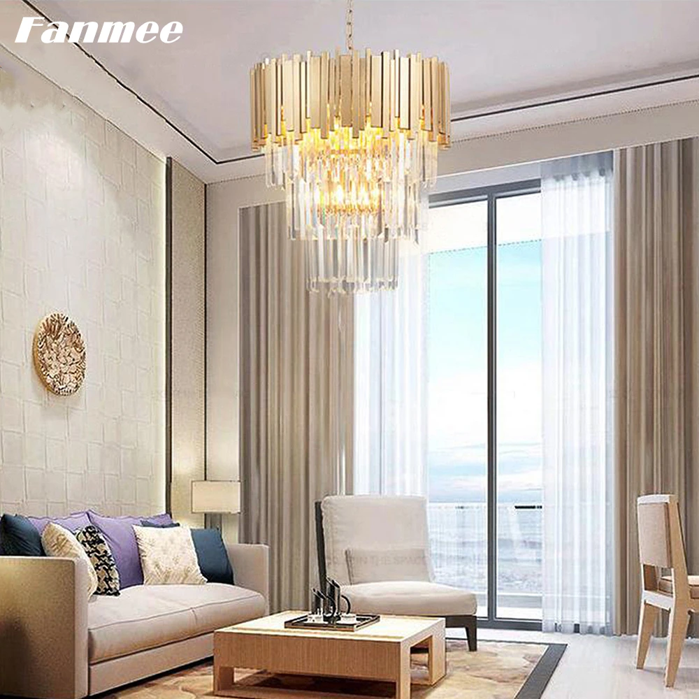 Постмодерн, роскошная круглая люстра со светодиодной подсветкой, золотая отделка, 3 яруса, прозрачная Хрустальная Подвесная лампа, арт-деко, гостиная, спальня, отель