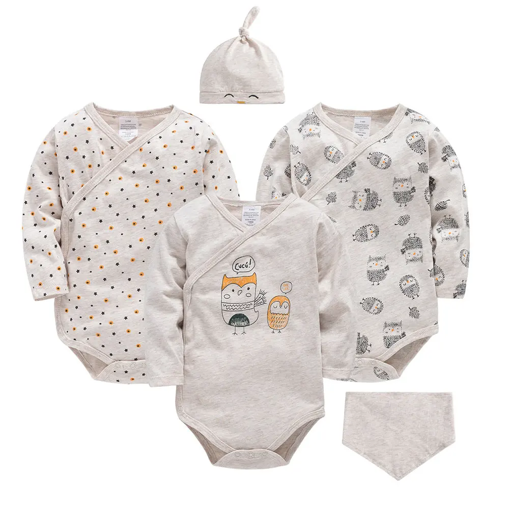 Kavkas/5 шт., новинка, комплекты одежды для малышей, подарки, бежевые Комбинезоны для маленьких мальчиков, шапки, нагрудники, костюм, боди для девочек с рисунком, подарок на день рождения