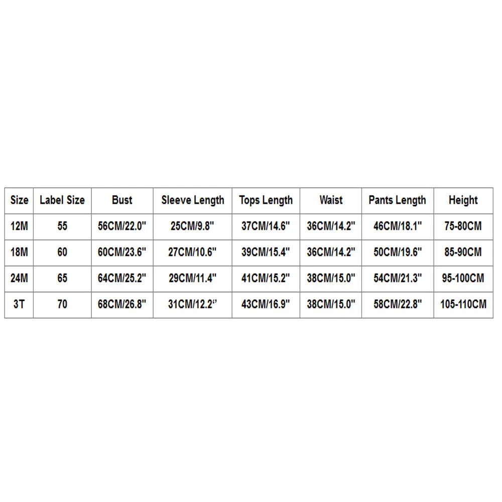 | Размер | Этикетка Размеры | Обхват груди | Рукав Длина | Топы Длина | Обхват талии | Брюки Длина | Высота |