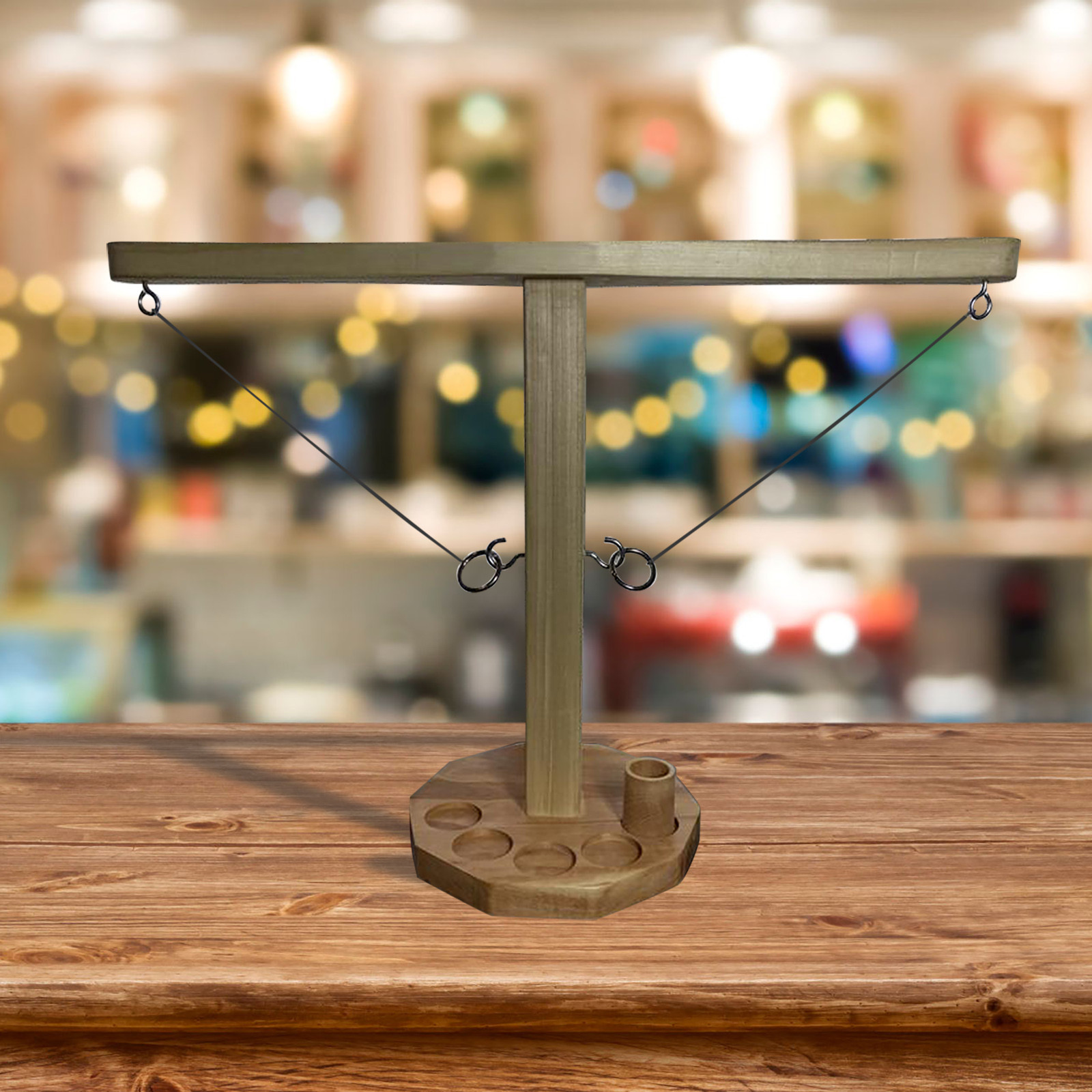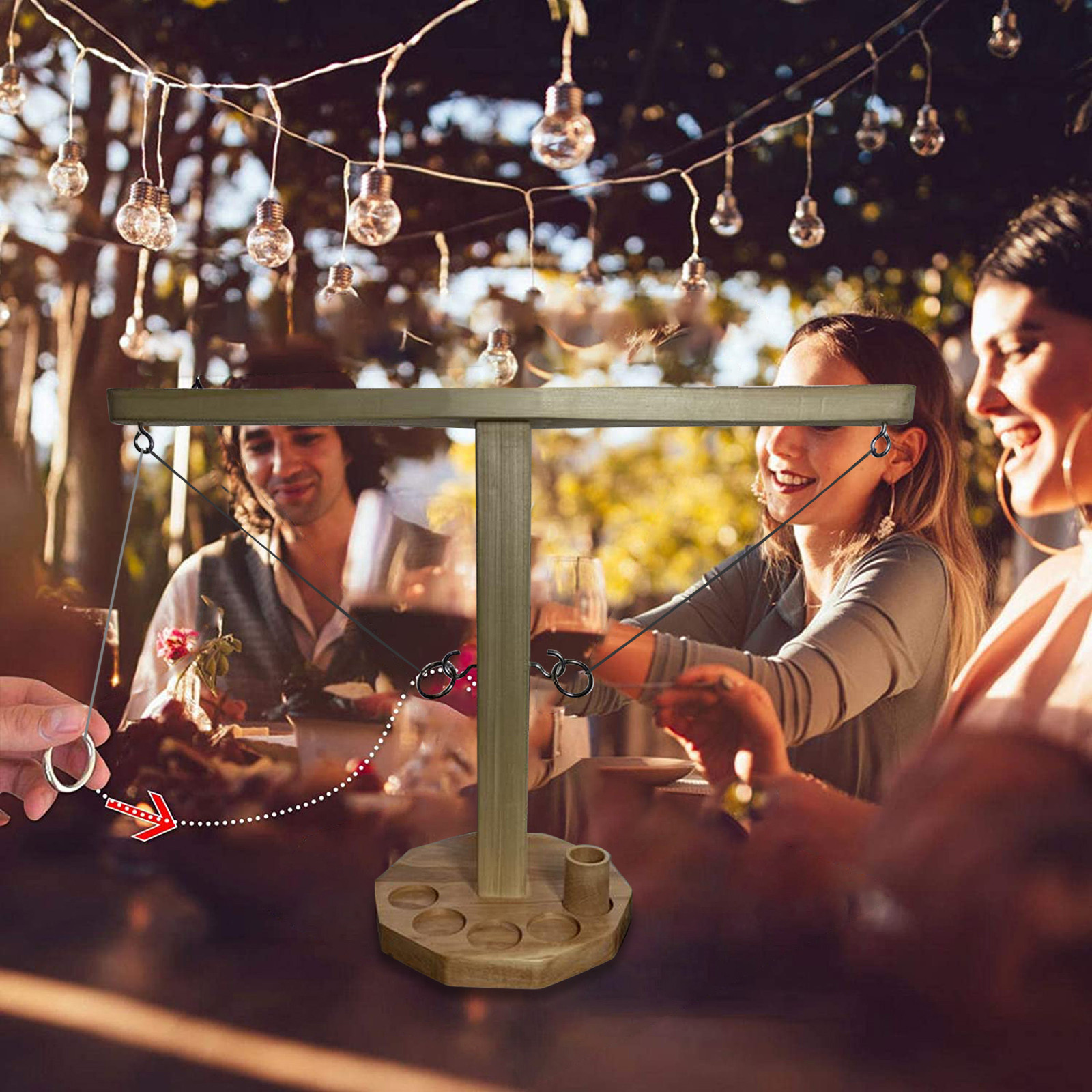 - Поместите деревянную чашку в центр круга, возьмите кольца и уходите! Каждый раз, когда вы приземляетесь