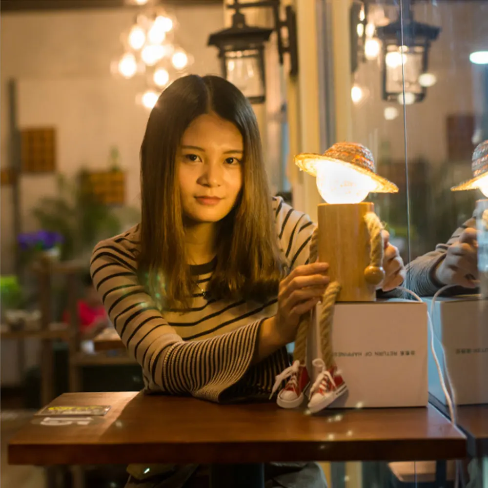 Креативное украшение Ночник LED деревянный человек светодиодная лампа настольная лампа USB мощность для спальни домашний подарок для детей
