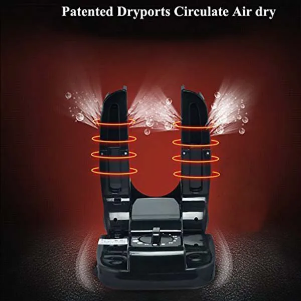 Patented Dry-ports Circulate Air with a working temperature controlled at 42 Celsius/106 Fahrenheit constant temperature, without any damage to your shoes.Antimicrobial and deodorant dehumidification: Adopting the innovative technology, without use of chemicals. Helps remove Odors from Perspiration and Bacteria, Dries, Dehumidifies, and Deodorizes