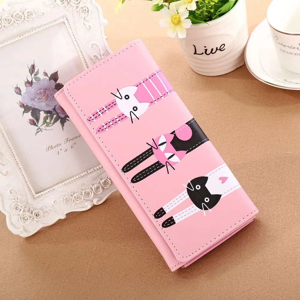 1xЖенский кошелек с кошкой, Длинный кошелек, визитница, сумочка(Без розничной упаковки)