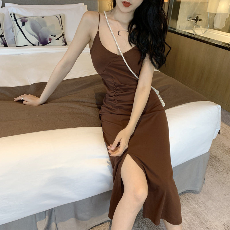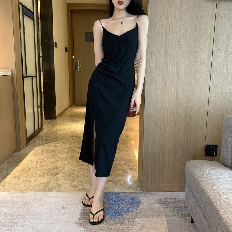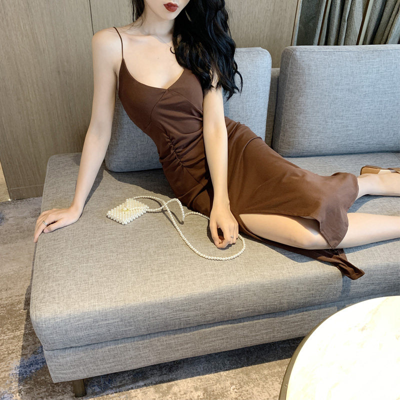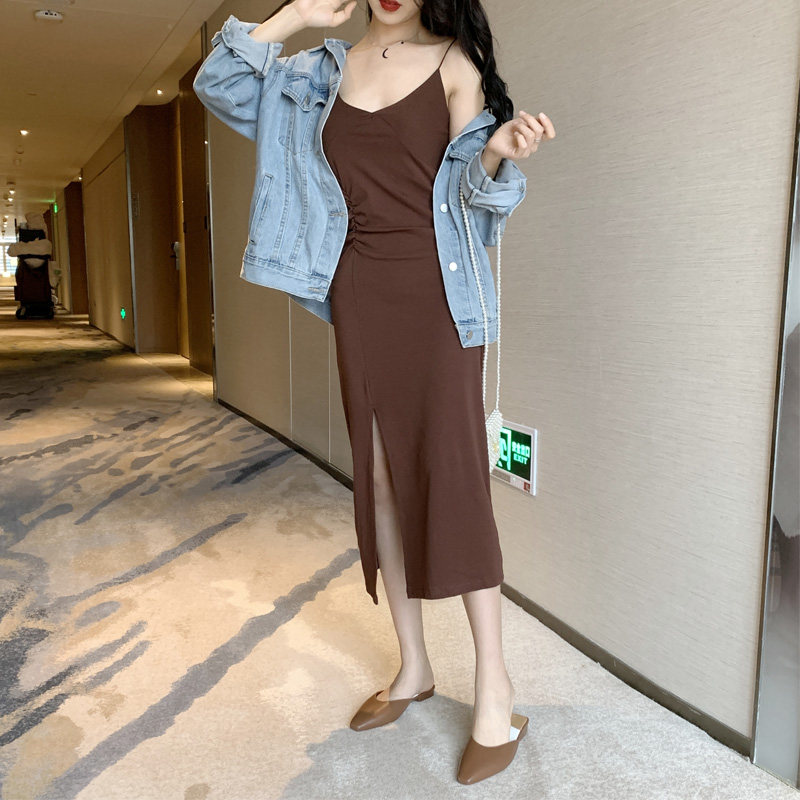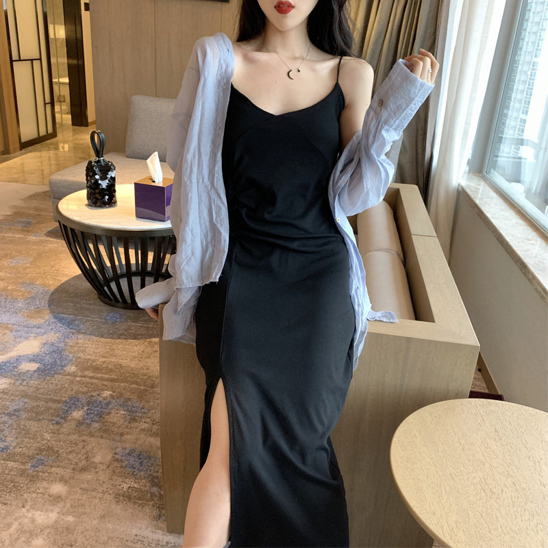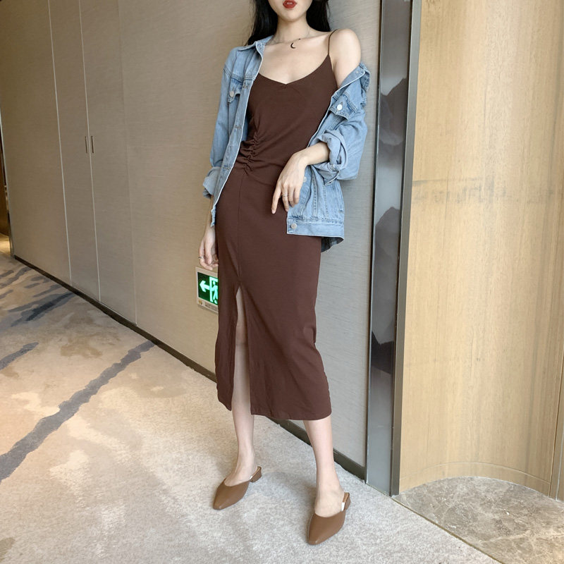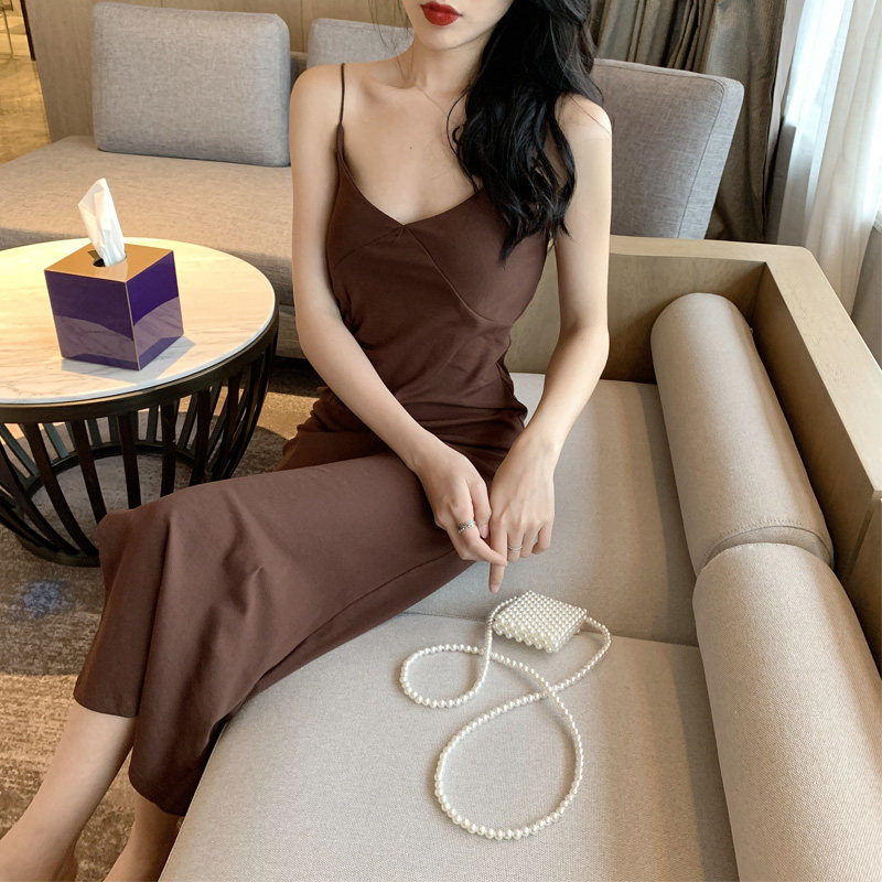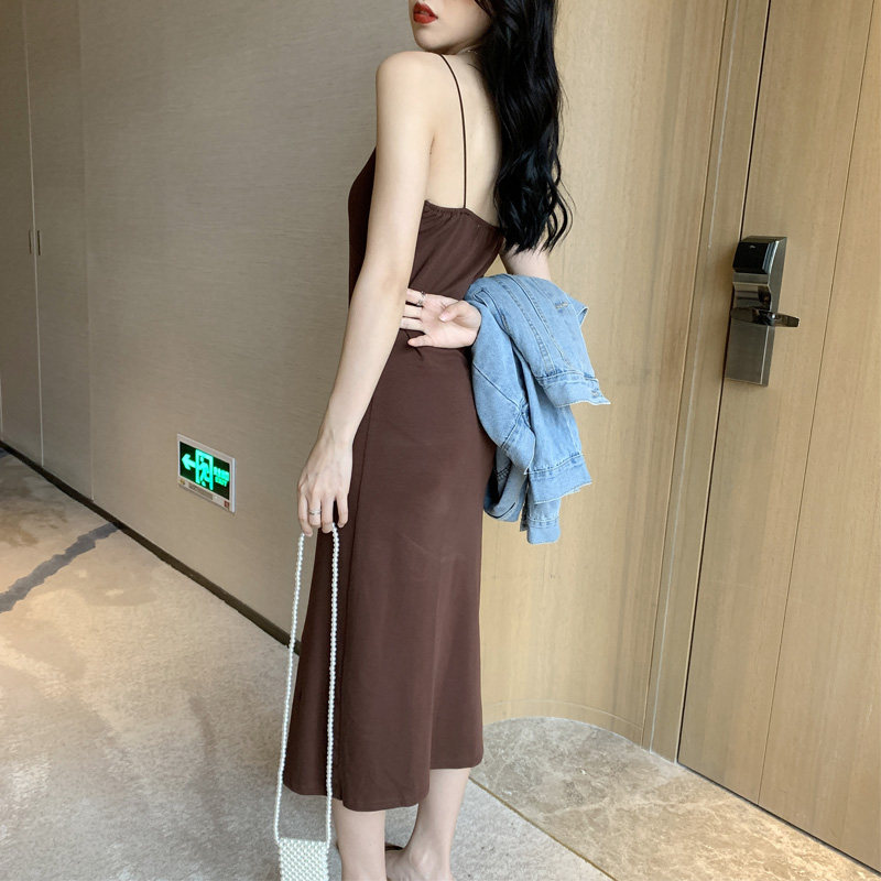 2 цвета летнее платье 2019 корейский стиль женщин сплошной цвет сексуальные спагетти длинное платье на лямках женщин