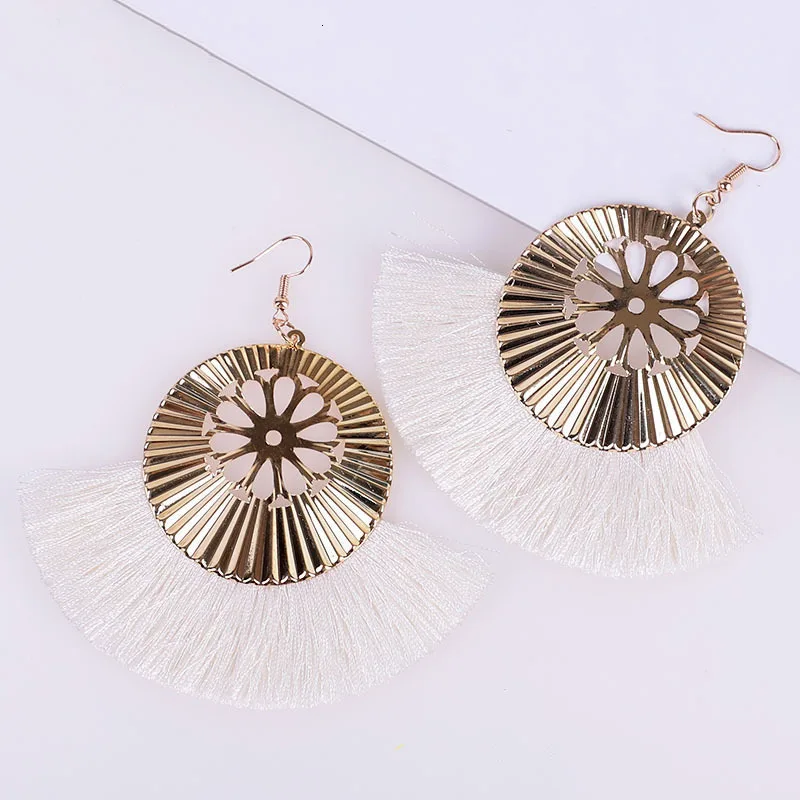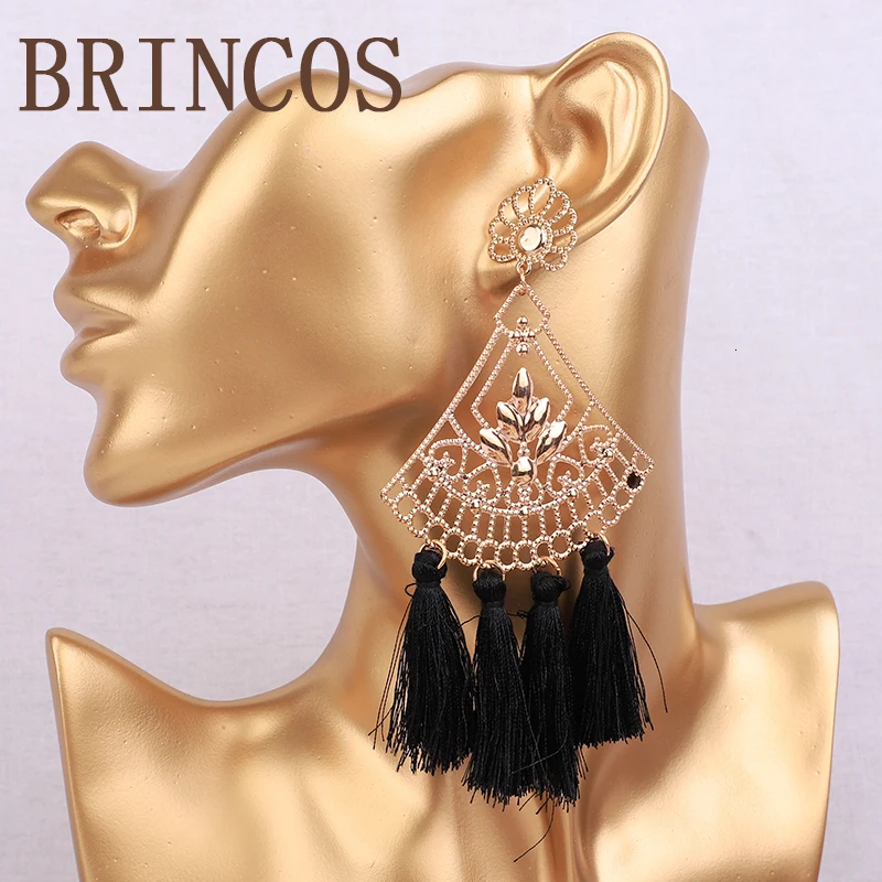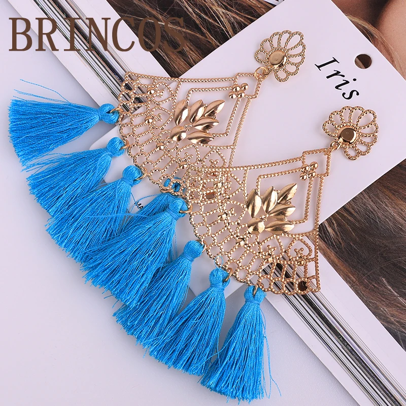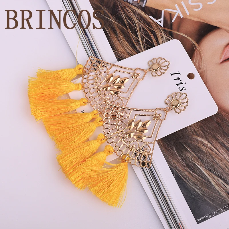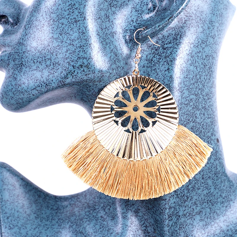 Nombre del producto: 2019 серьги с металлическими кисточками в богемном стиле, женские вечерние ювелирные изделия, модные эффектные длинные золотые ретро-модели