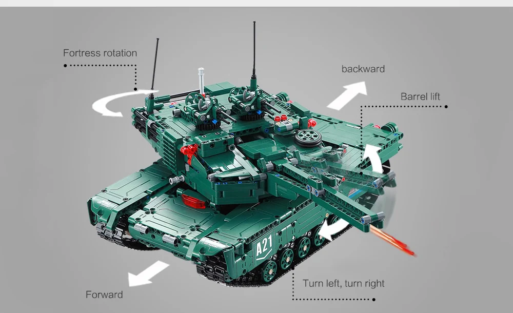 ● Пять комплектов высококлассной силовой группы с высоким крутящим моментом, дистанционное управление вперед/назад/влево поворот/правый поворот/вращение башни/баррель лифт/ракета многофункционал, такой как запуск;