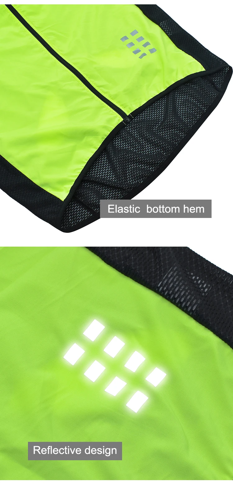 Он защищает от ветра, но обеспечивает достаточную воздухопроницаемость, чтобы хорошо проветривать и сушить; Он помогает держать брызги или светильник под дождем; светоотражающие полосы шириной 4 см обеспечивают безопасную езду на велосипеде и пробежку ночью.