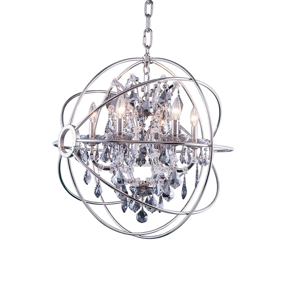 Дымчатая Хрустальная ретро люстра светильник ing светодиодный винтажный Хромовая Сфера подвесной светильник арт-деко Домашний Светильник приспособление для гостиной