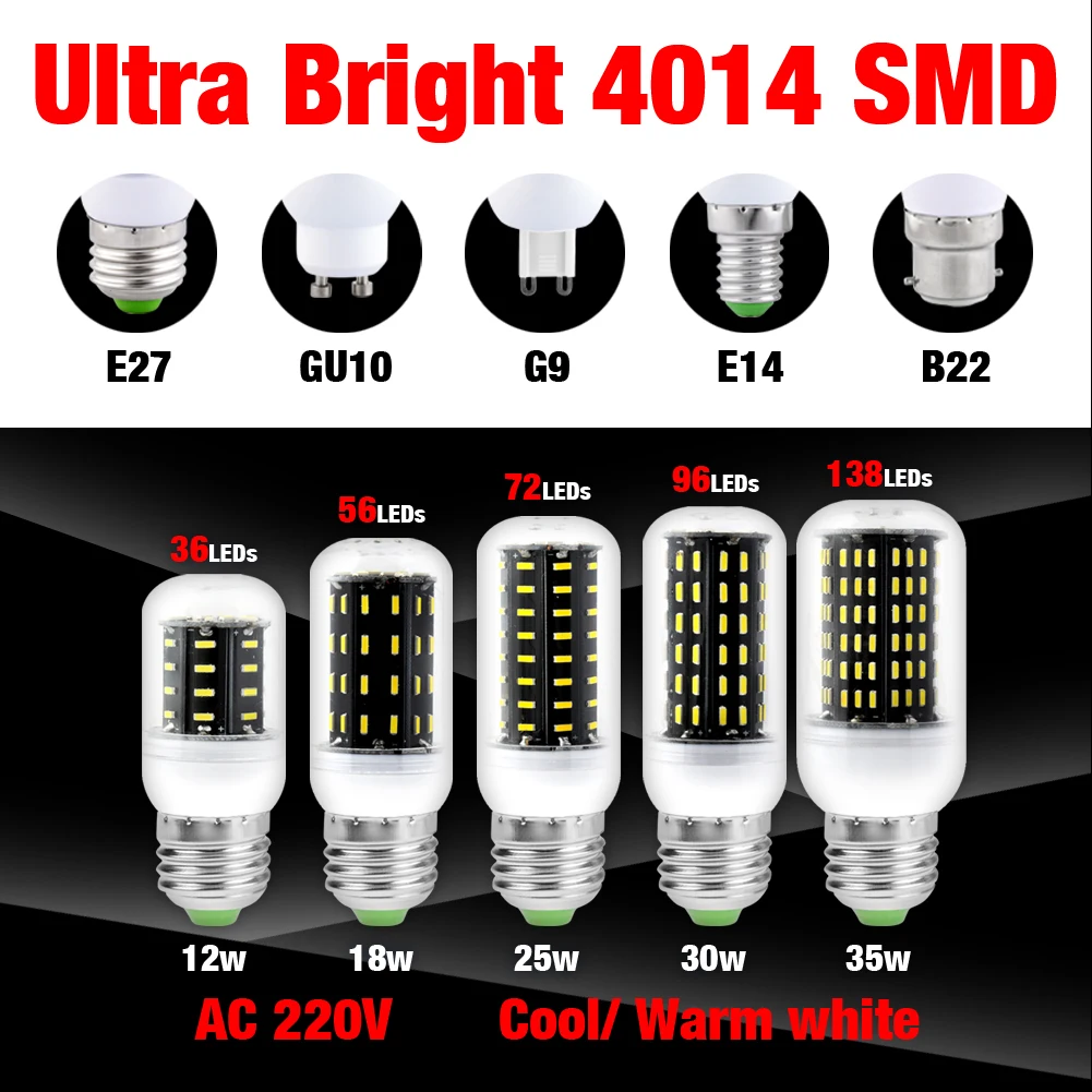 E27 | 8 см/3,1" | 9 см/3,5" | 9,5 см/3,7" | 9,7 см/3,8" | 10 см/3,9" |