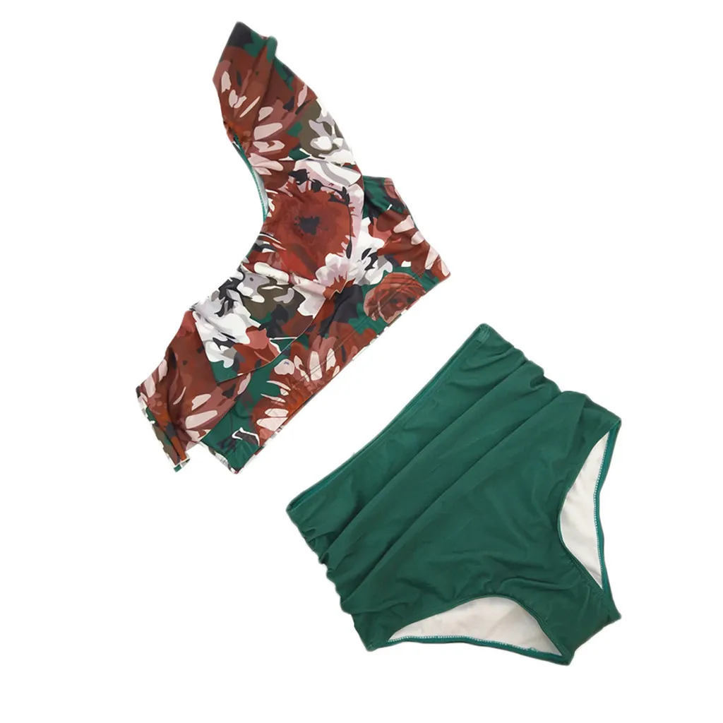 Женский раздельный купальник бикини с оборками на одно плечо, пляжная одежда, большие размеры