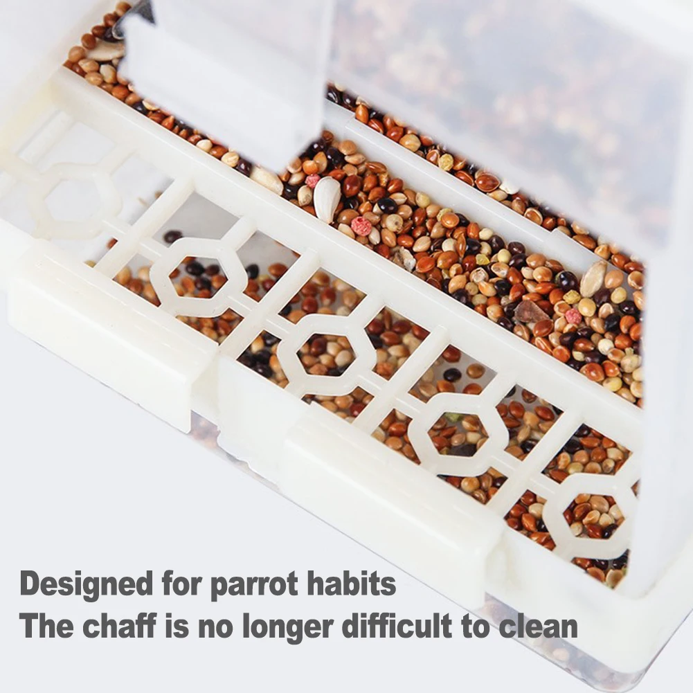Большая емкость: Размер: около 14 см × 10 см × 7,5 см. Он может вместить 500 г пищи для птиц, обеспечивая птице около 15 дней хранения зерна.