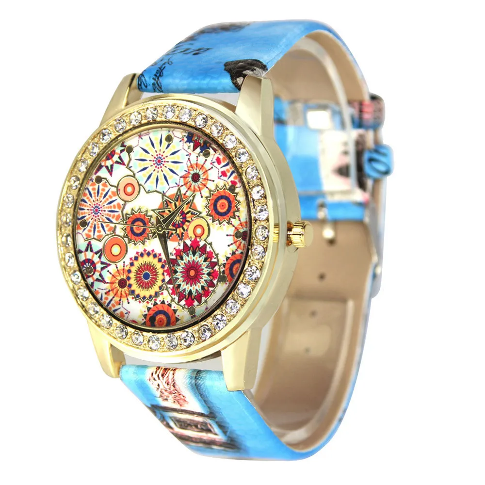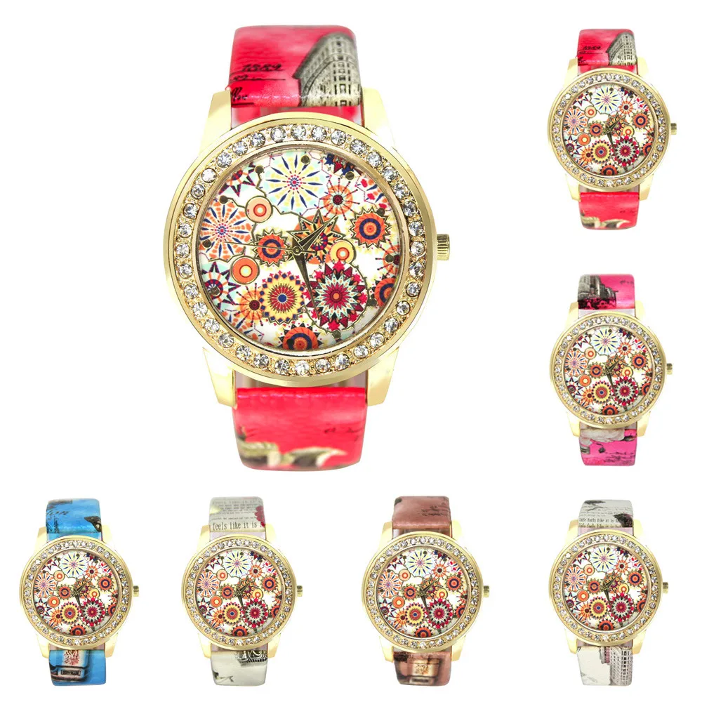 Модные Аналоговые кварцевые часы Vogue с рисунком маслом и кожаным ремешком