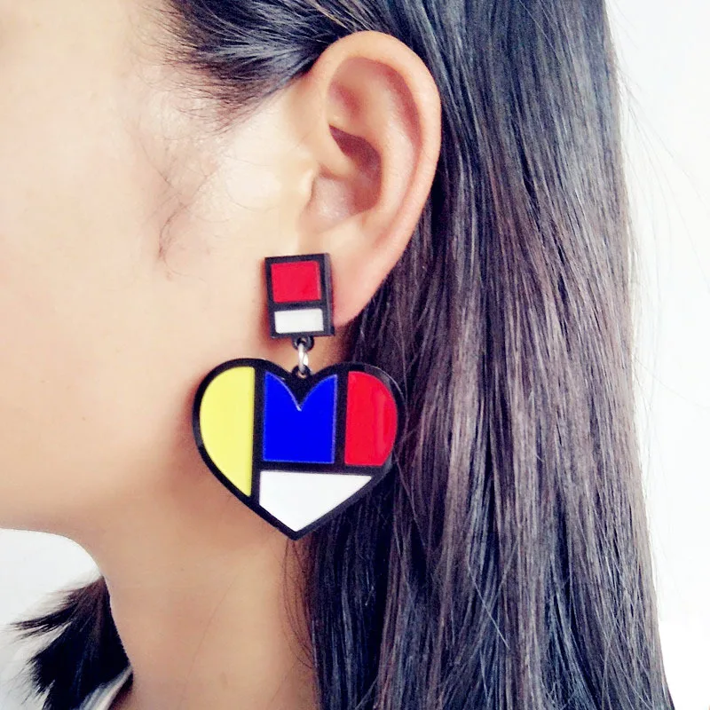 Милые/романтичные женские акриловые серьги в Корейском стиле с изображением сердечек 2 цветов, Изысканные милые женские серьги модный подарок для ювелирных изделий E19045