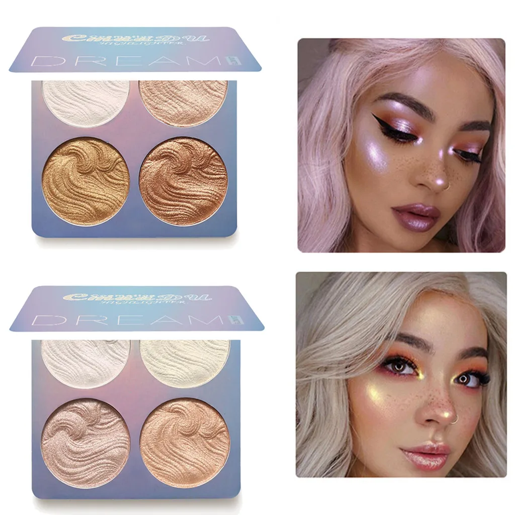 Макияж прессованная для лица Пудра 4 цвета загара и Powder пудра палитра высокое мерцание светящийся лайнер набор