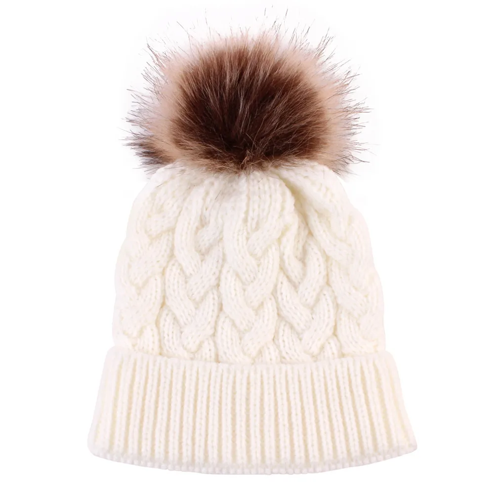 Милые зимние детские шапки для новорожденных; вязаная шерстяная шляпа