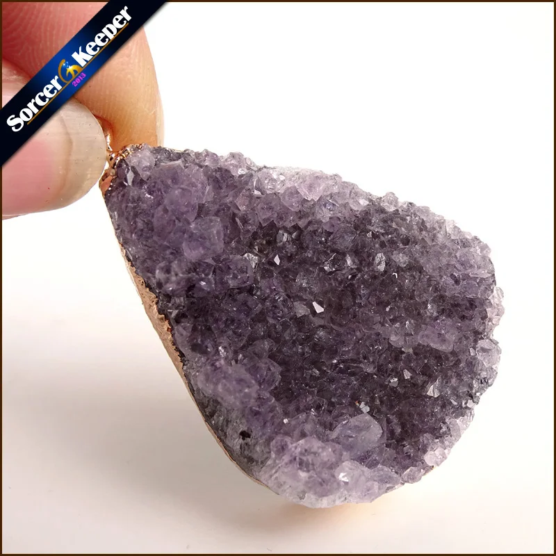 | Естественный неправильной формы фиолетовый необработанный Аметист Кварцевый Кристалл кластер кулон ожерелье с 24-каратным золотым заполнением края подходит для изготовления ювелирных изделий YS033