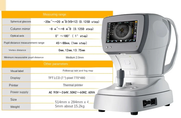 Область применения: продукт подходит для измерения диоптрия глаз человека (близорукость, дальнозоркость, астигматизм, оптическая ось), что может обеспечить основу для офтальмологической диагностики и соответствия.