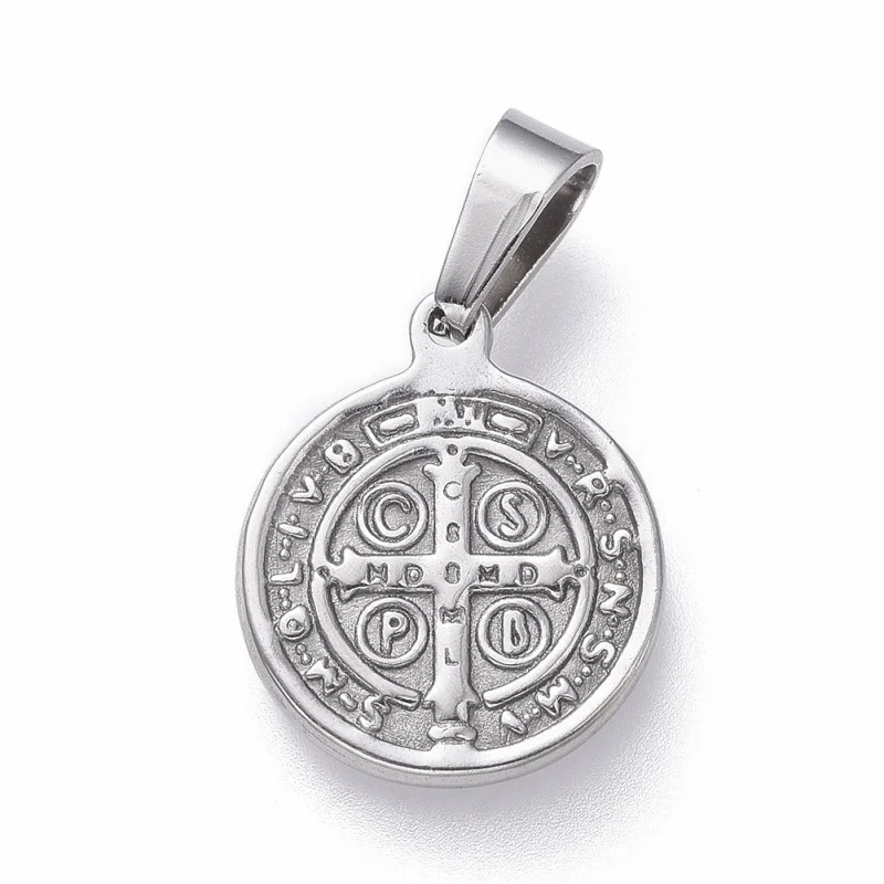 10 шт. 304 нержавеющая сталь плоский круглый крест кулон Бог Отец религиозный христианский для подвески для бижутерии, ожерелья