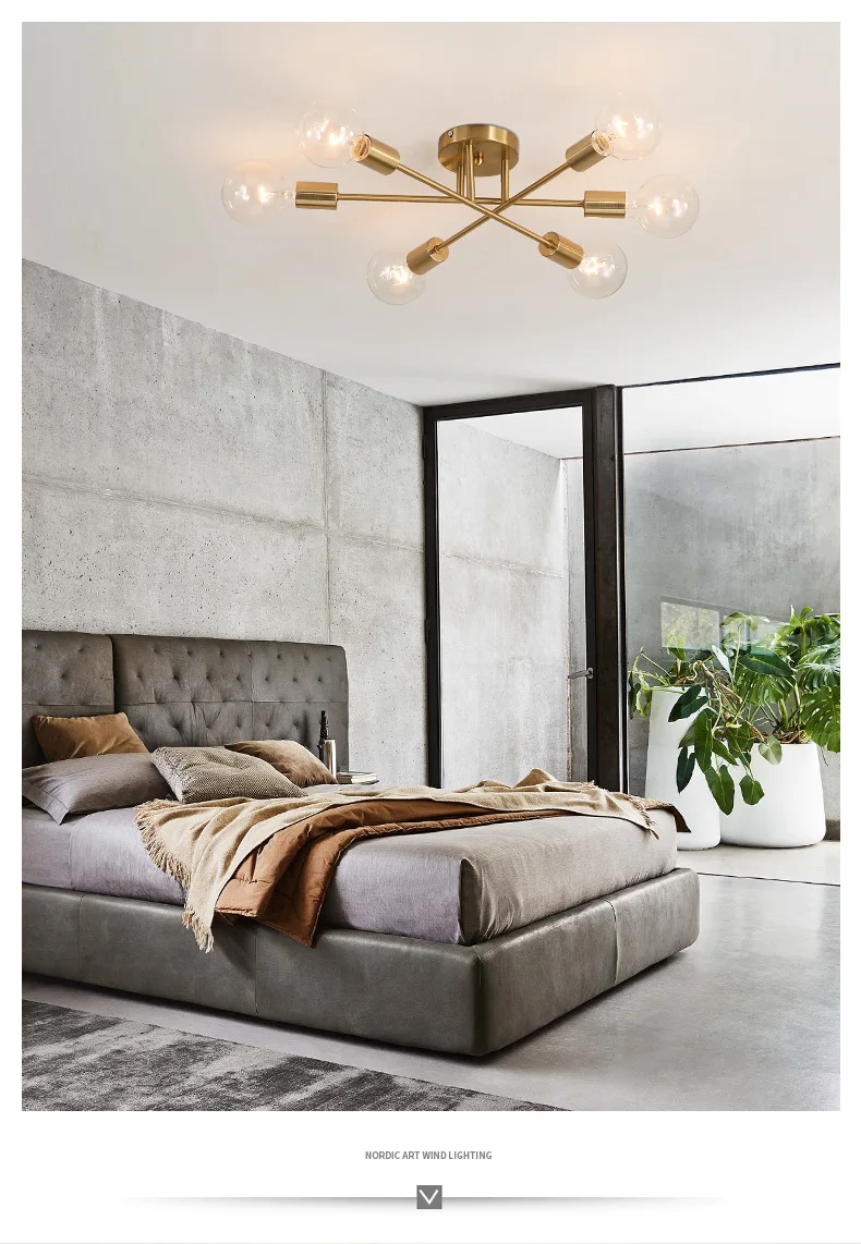 Современная люстра-спутник приспособление освещения Nordic полу Утопленный монтаж потолочный светильник матовый Античное золото освещения 6-осветительное украшение для дома