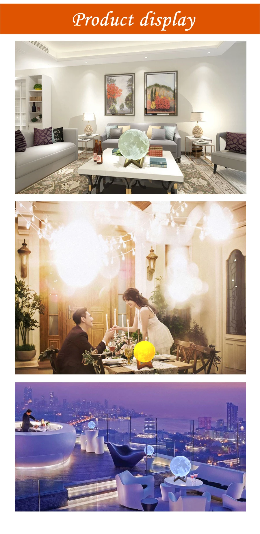 Круглый светодиодный Ночной светильник с 3D принтом, лампа с Луной, красочное изменение, USB Перезаряжаемый сенсорный выключатель, Luna Moon светильник, украшение для дома, креативный