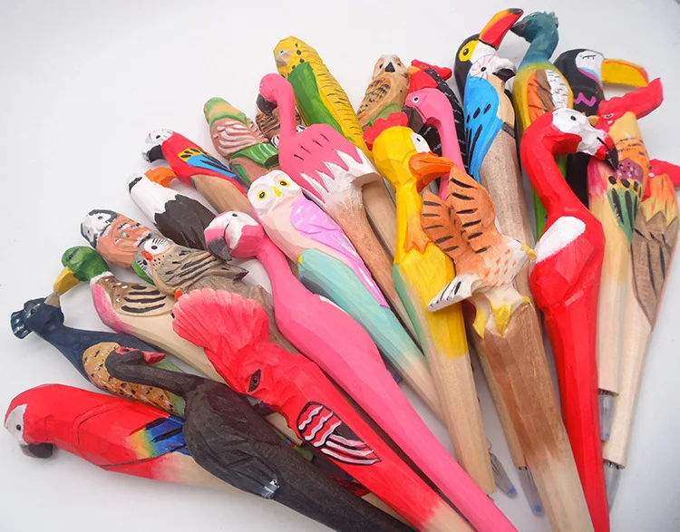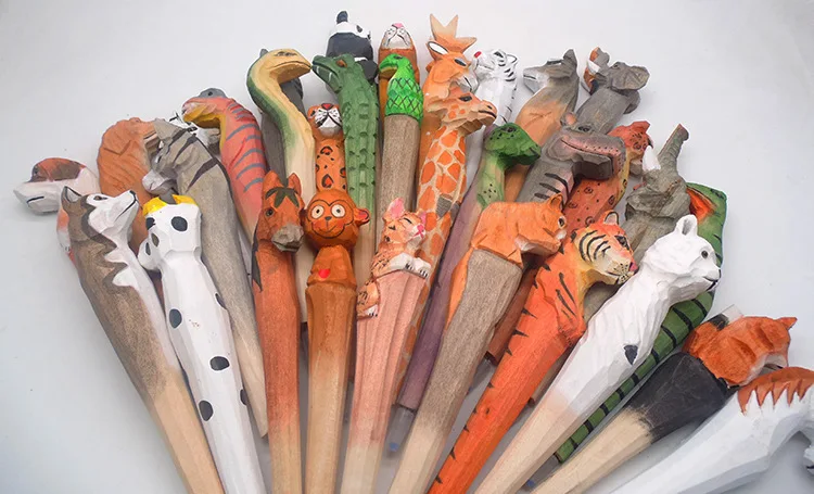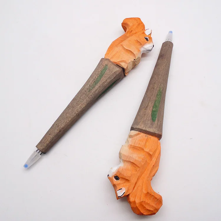 Креативные канцелярские подарки, милая ручная резьба по дереву, ручка из цельного дерева с животными, креативная художественная шариковая ручка, подарки