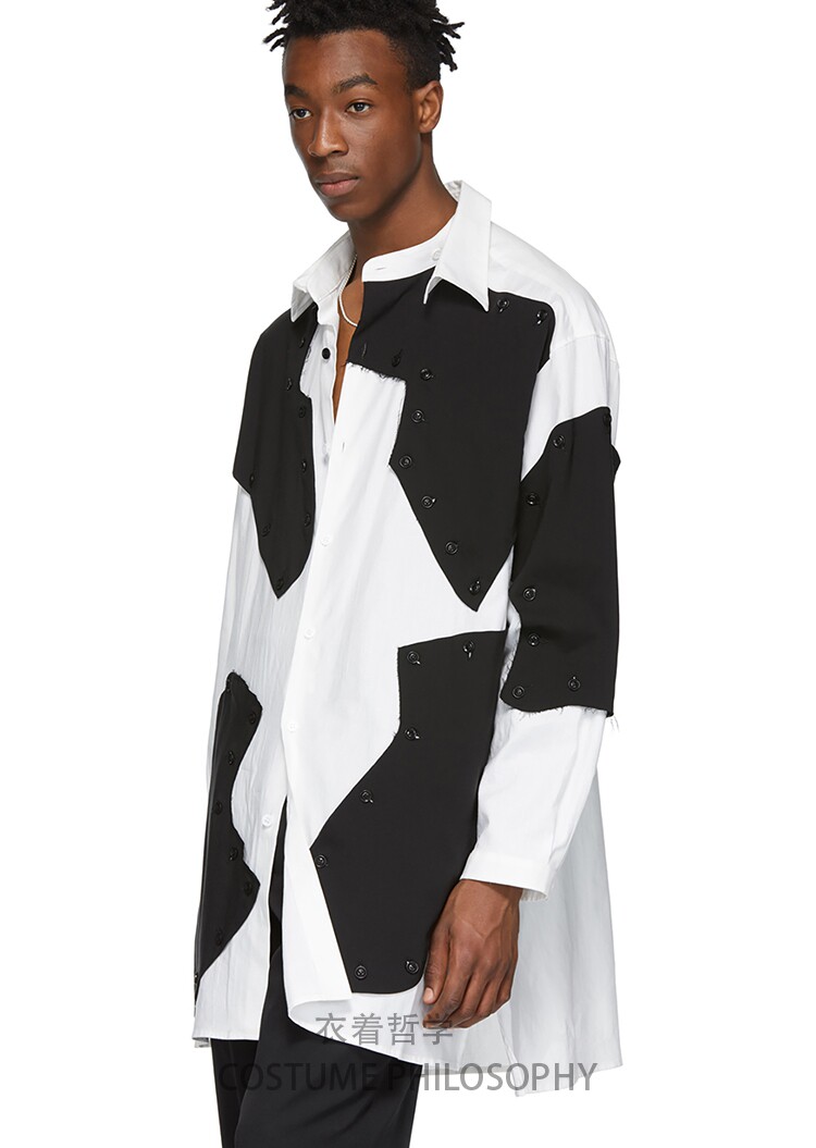 S-6XL! Модная стильная мужская рубашка с вышивкой свободная Асимметричная рубашка.