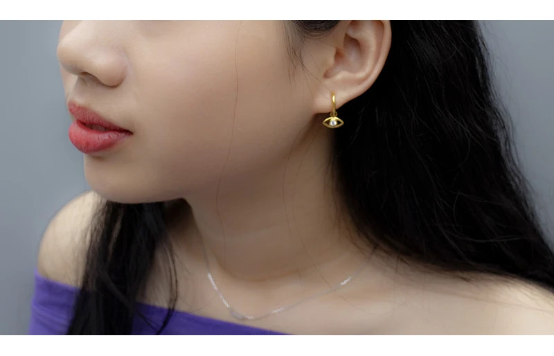 Размер:О внутренний диаметр 9,7 ММ, наружный диаметр: 12 мм, внешняя сторона глаз циркон длинные 6*10,5 мм.