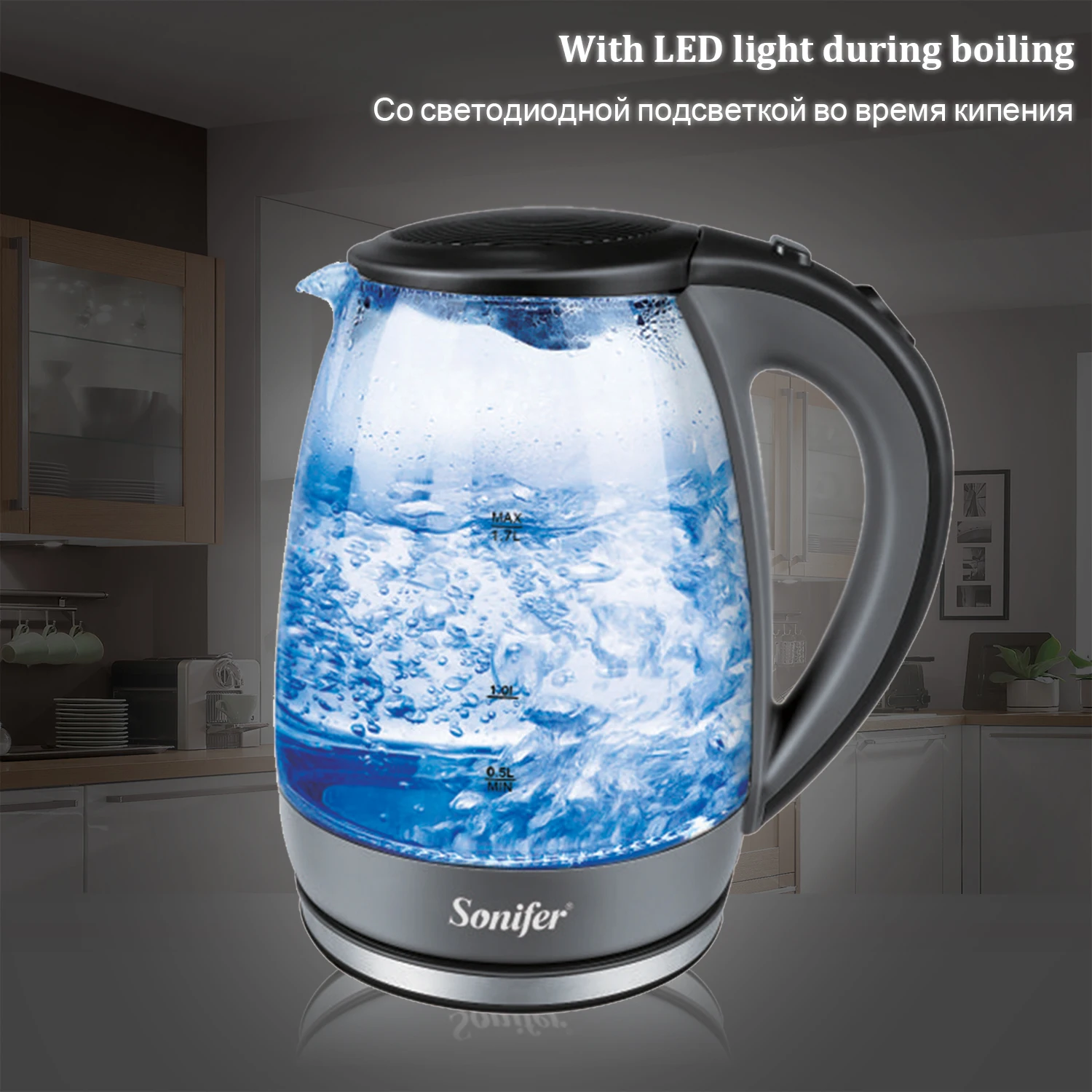 1.7L Электрический чайник Стекло 1680 Вт бытовой