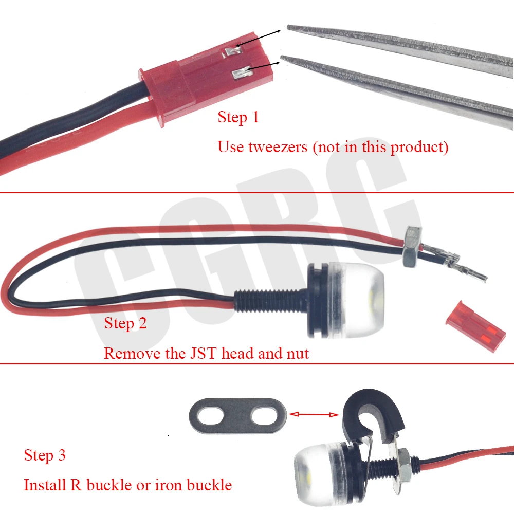 Замените установку R-образной пряжки. Используйте пинцет для удаления головки JST.