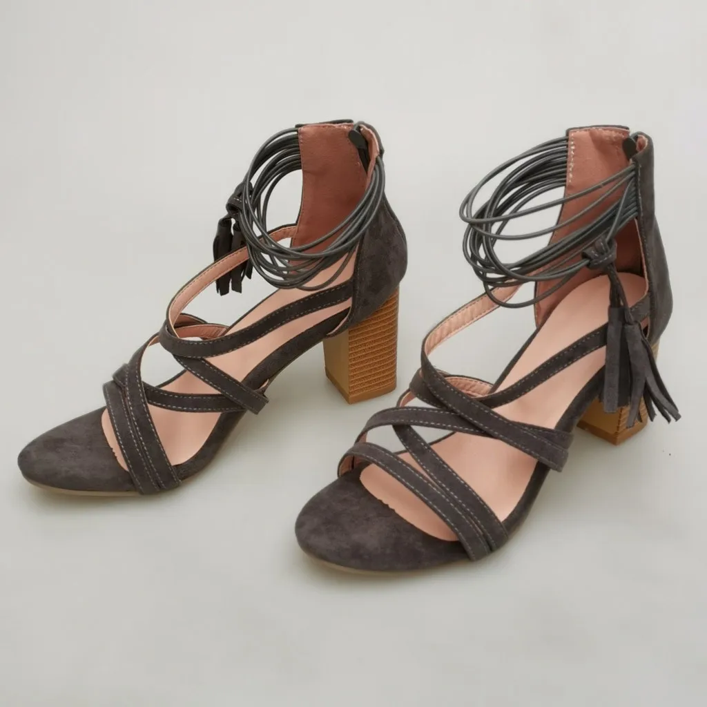 SAGACE/женские босоножки; шлепанцы; летняя модная обувь на высоком толстом каблуке с перекрестными ремешками и кисточками; повседневные однотонные босоножки на шнуровке