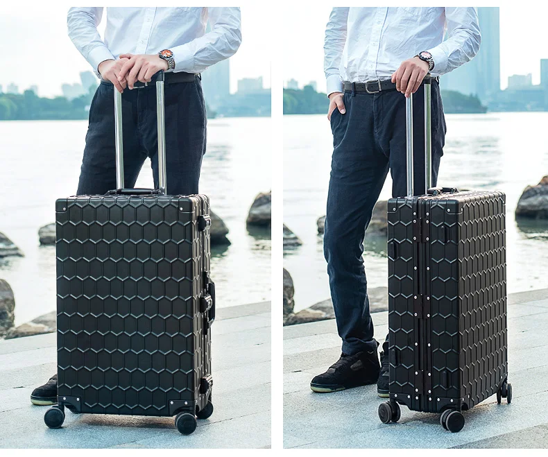 Название: высококачественный модный чехол из алюминиево-магниевого сплава на колесиках с твердой стороной для багажа, алюминиевый чехол для костюма, чехол для посадки для мужчин и женщин, полностью металлический чехол для костюма s для путешествий от известного бренда