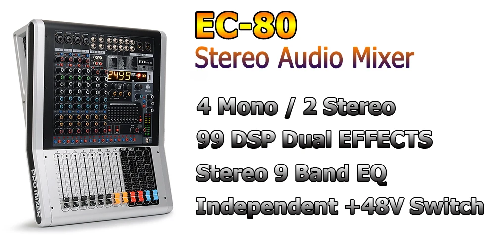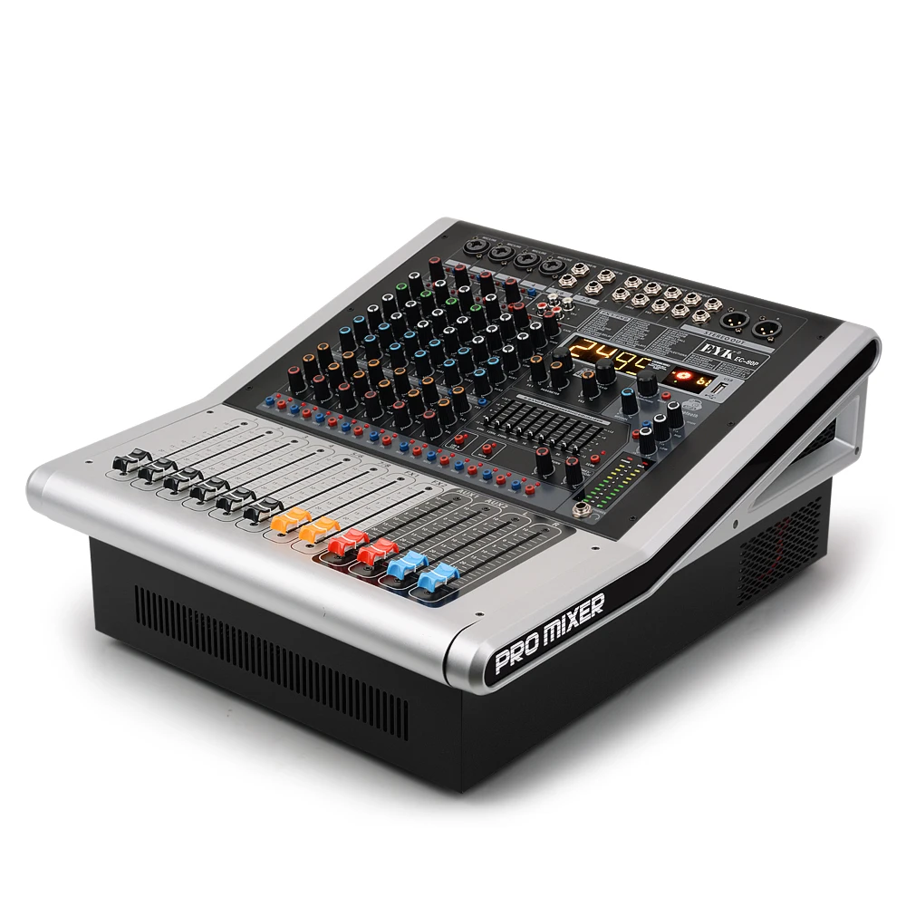 EC80P 8 каналов стерео Powerd аудио миксер 550 Вт x 2 с 9 диапазоном EQ 99DSP Dual Effects Bluetooth USB 2 AUX для сцены