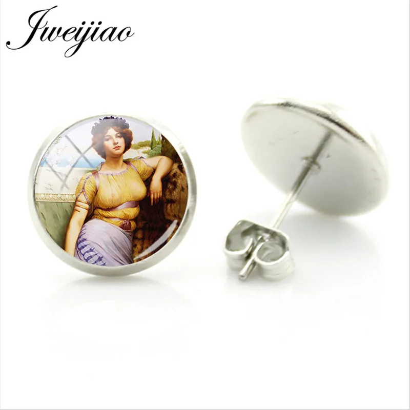 JWEIJIAO рождения мира Классическая картина серьги-гвоздики Стекло Кабошон искусство фотографии сплав родиевое покрытие уха ювелирные изделия WD50
