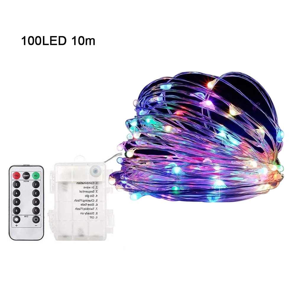 Веревка с питанием от аккумулятора, трубчатые огни, водонепроницаемые с пультом дистанционного управления, 10 м, 100 светодиодов, лампа для рождества, сада, траектории, ограждения