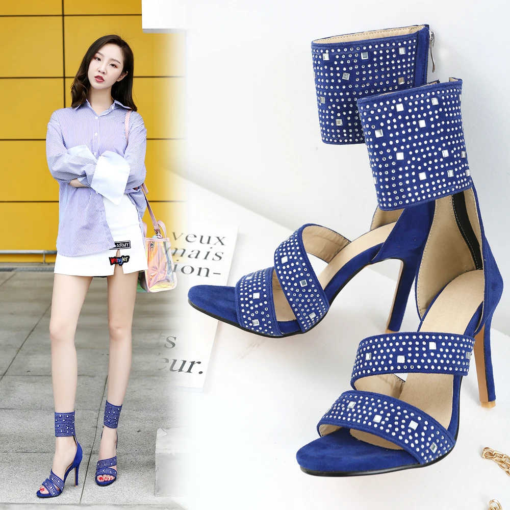 Sgesvier/женские сандалии модные летние туфли с открытым носком на высоком каблуке, на молнии женские свадебные вечерние туфли со стразами размеры 32-46, G435