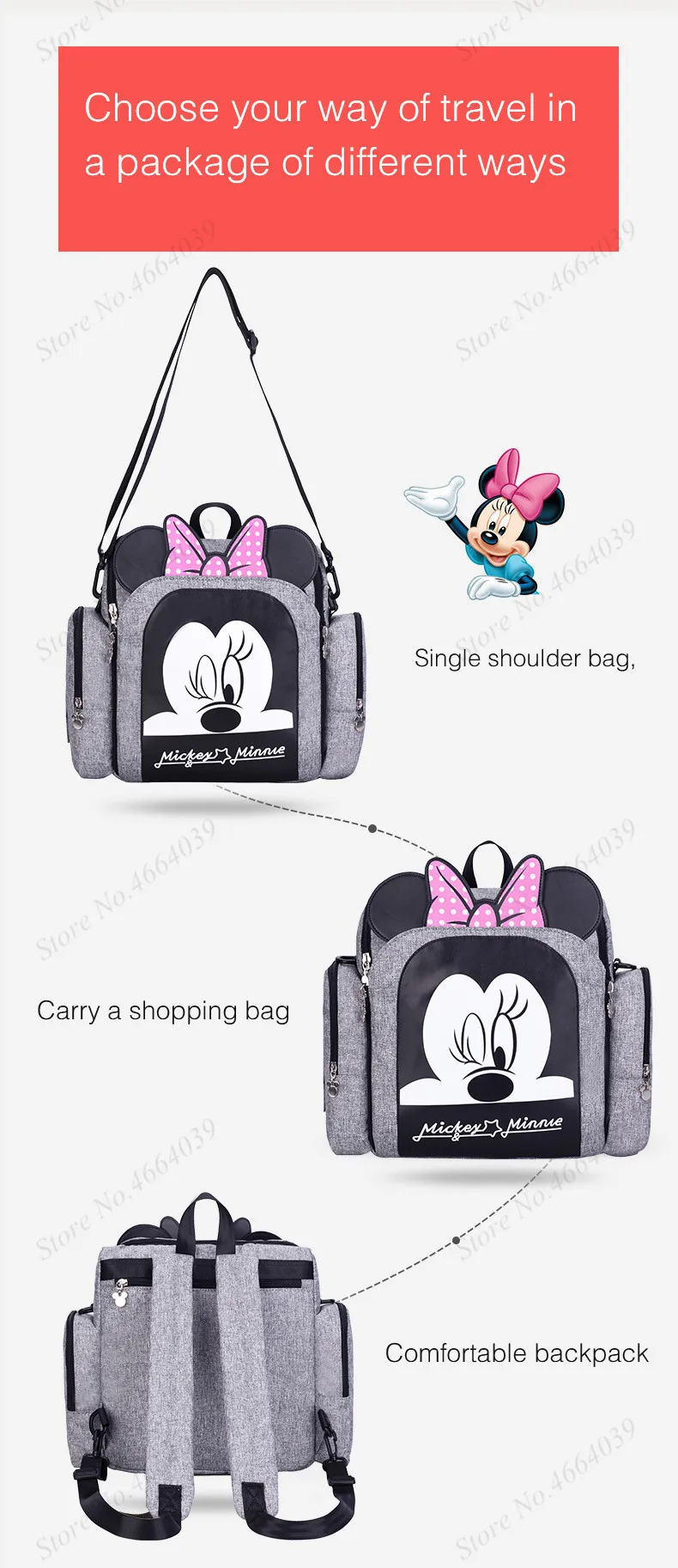 Детская сумка для подгузников, водонепроницаемый дорожный рюкзак для беременных, сумка для подгузников с Микки Маусом, сумка для ухода за ребенком, 2019