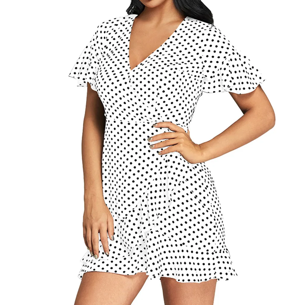 Короткое женское платье с оборками и принтом в горошек, сексуальное облегающее пляжное женское платье с коротким рукавом, летнее праздничное мини-платье Vestidos