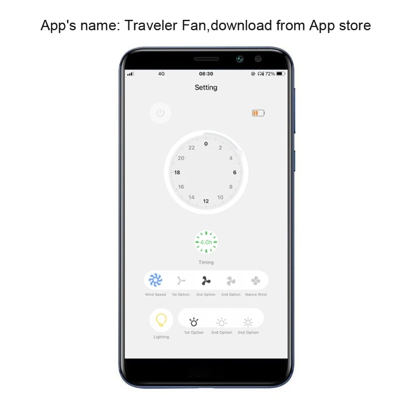 Телефон приложение Bluetoorh управления потолочный вентилятор, название приложения: путешественник вентилятор, удаленное расстояние около 5 метров, с использованием 8000mAH большой емкости батареи.