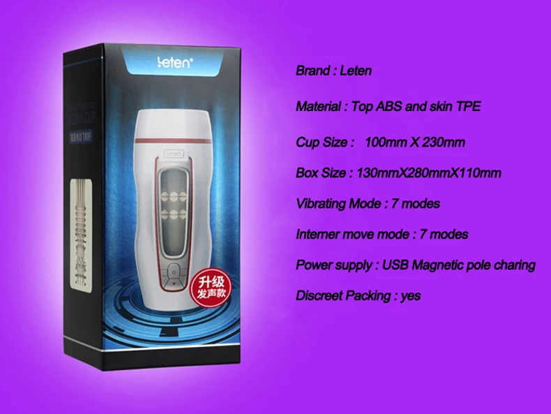 Информация о продукте: 1. Функция: 7 вибраций * 7 режимов движения = 49 видов различных ощущений 2. Материал: ABS,TPE 3. Размер: 100x230 мм/3,9 ''x 8,97'' 4. Питание: USB Перезаряжаемый 5. Смазка и презервативы рекомендуется, когда вы готовы использовать эту чашку для мастурбации. 6. Пожалуйста, прочитайте руководство перед использованием этих секс-игрушек. 7. Пожалуйста, не покупайте эти товары, если вам не 16 лет 8. Чтобы сохранить здоровье, пожалуйста, Стирайте его до и после использования. 9. Методы хранения: хранить в прохладном, сухом месте, недоступном для детей. 10. Для лучшего опыта: смазка рекомендуется, когда вы готовы использовать эту игрушку pefect. Особенности: Полностью Автоматическая мастурбация, бусы будут двигаться вверх и вниз. Длина 55 мм, Супер мягкий силиконовый материал, почти такой же, как вагинальный. 150 раз вибрирует в минуту, 7 скоростей * 7 частот, регулируемые 49 режимов Автоматическое затягивание канала, даже более захватывающее, чем влагалище. Класс водонепроницаемости: в основном из водонепроницаемого материала Уровень шума: бесшумный Пакет включает в себя: 1 * мастурбатор по ощущениям похож на реальную ВАГИНУ 1 * USB кабель для зарядки 1 * Руководство пользователя