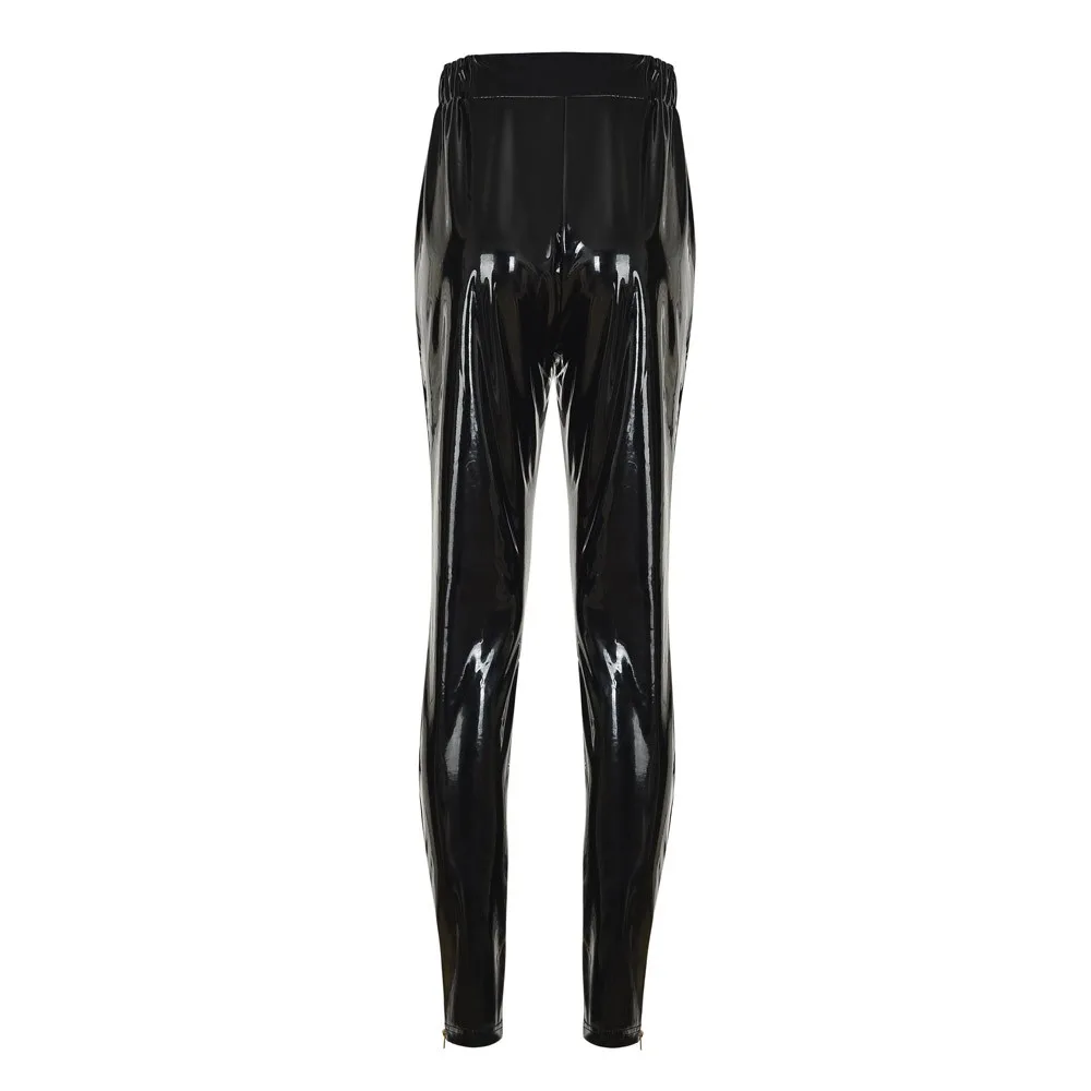 Женские кожаные леггинсы с высокой талией, Стрейчевые брюки, штаны для сцены