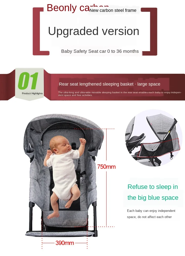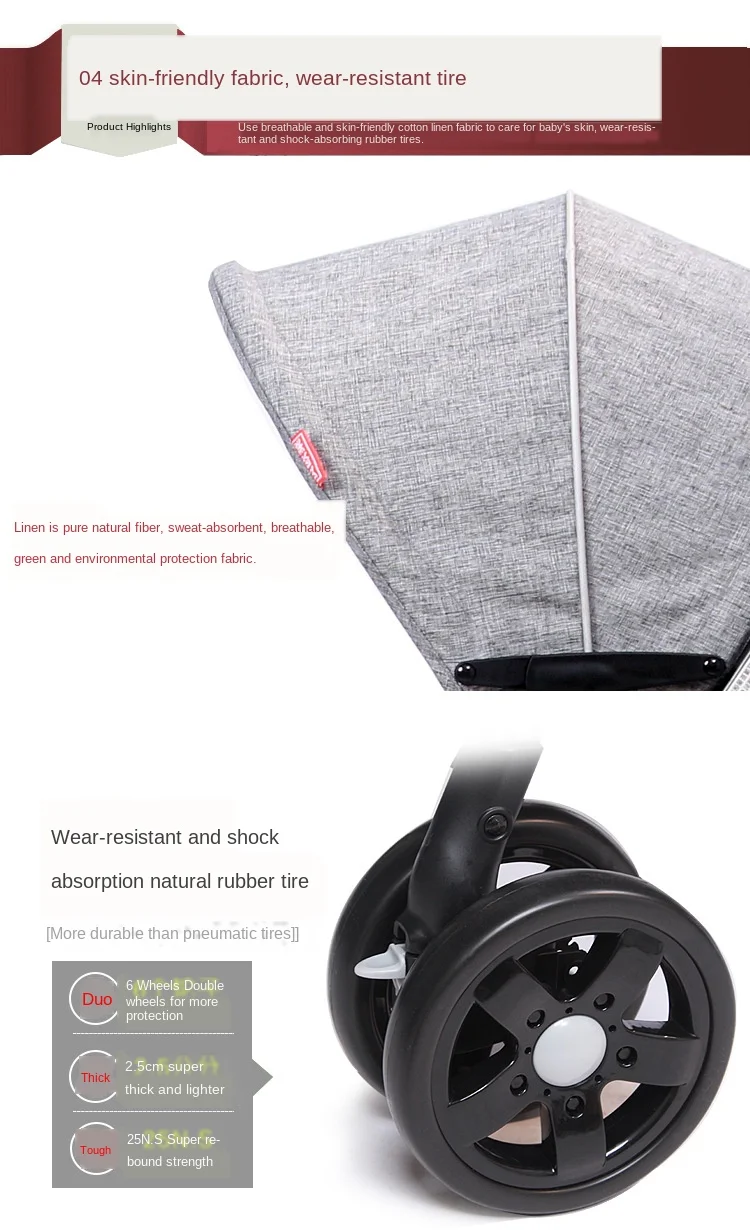 High View Baby Stroller Can Sit and Lie Travel Portable Reversible Newborn Strollers 3 In 1 Basket Multiple | Мать и ребенок