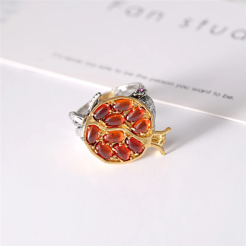 ROMAD фруктовый гранатовый ювелирный набор из ротанга Гранат Кулон Ожерелье Серьги Кольца для женщин винтажные вечерние ювелирные изделия аксессуары R3